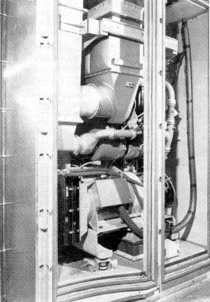 La climatisation est réalisée à l'aide d'équipements de type aéronautique ABG-SEMCA qui n'utilisent que l'air comme agent d'échange de température. Le système présente un certain nombre de caractéristiques favorables: une masse et un encombrement faibles (fig. 23), une vitesse d'air importante permettant d'utiliser des gaines de distribution de faible diamètre et la possibilité d'une mise en température des compartiments en un temps plus court. Chaque ensemble comprend (fig. 24) :