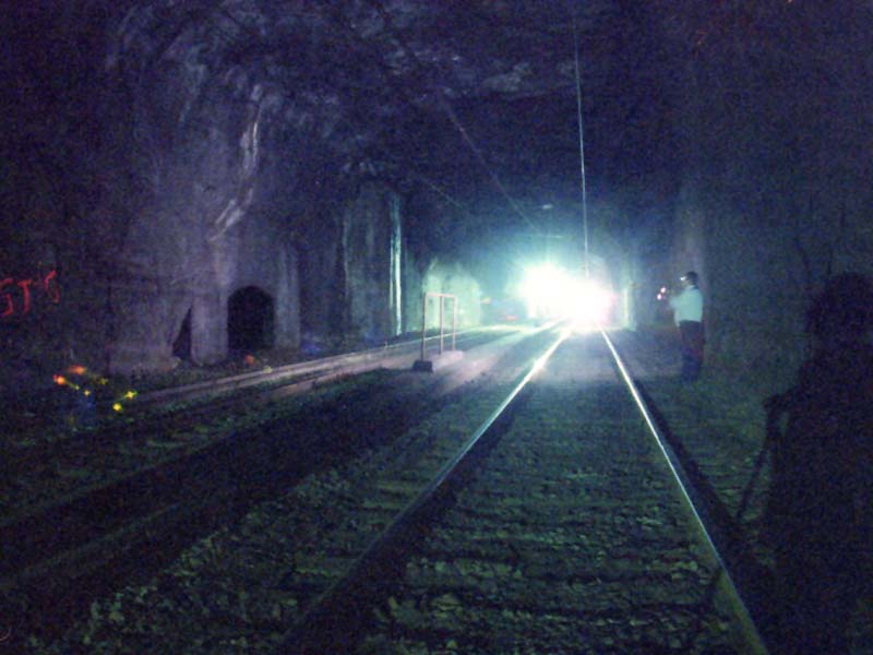La finition du tunnel varie énormément. Ici, il est semi-fini; les piédroits sont en pierre